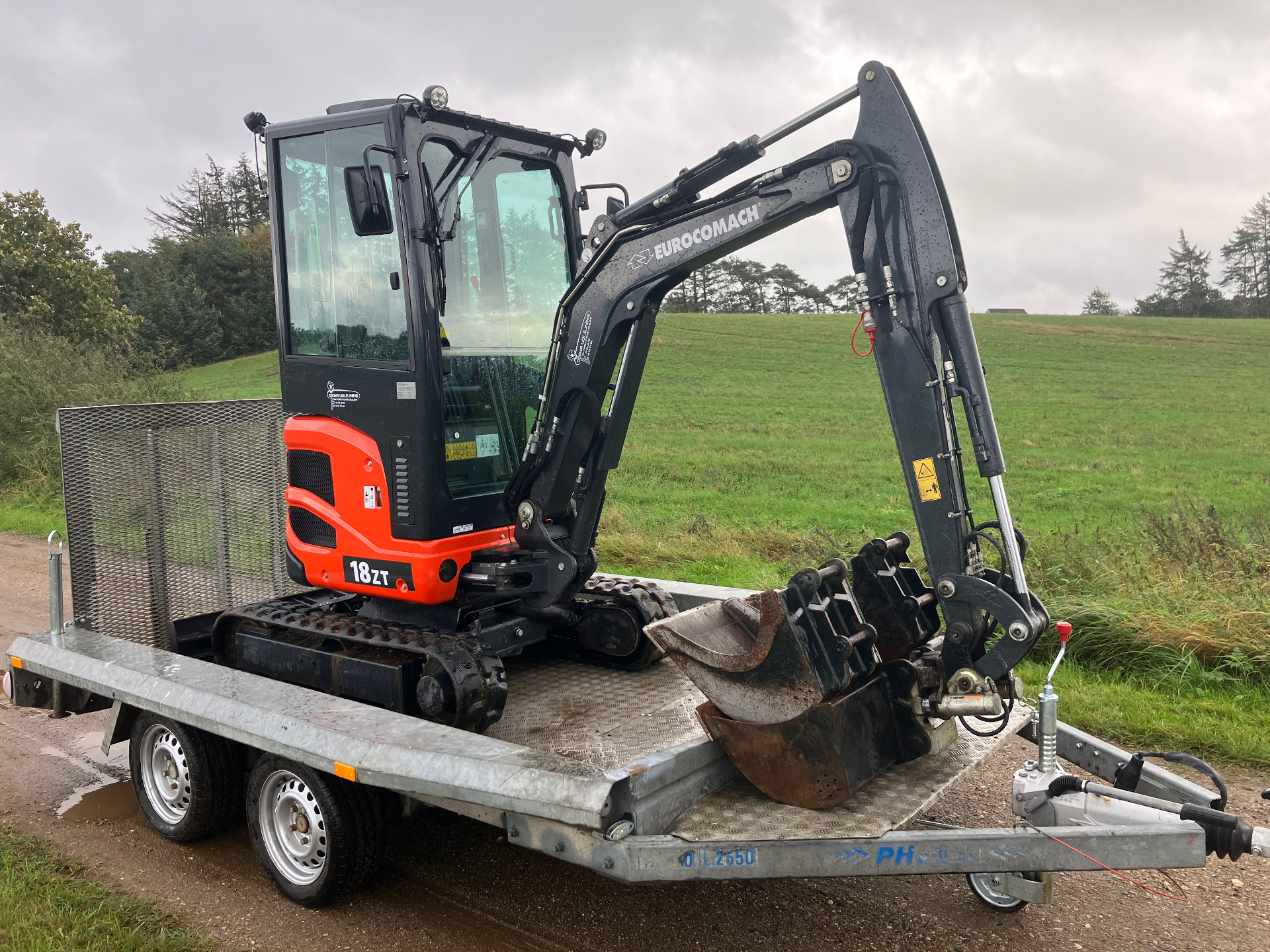 Udlejning af minigraver 1,8 T med trailer