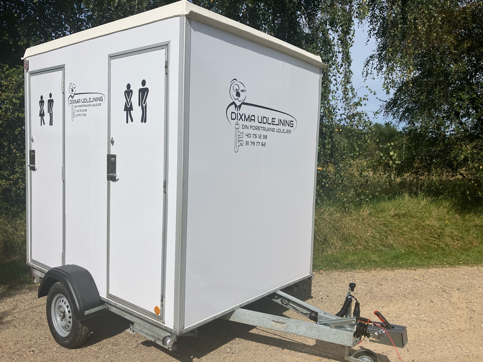 Udlejning af dobbelt toiletvogn med kværn (2 wc'er) perfekt til din næste fest!
